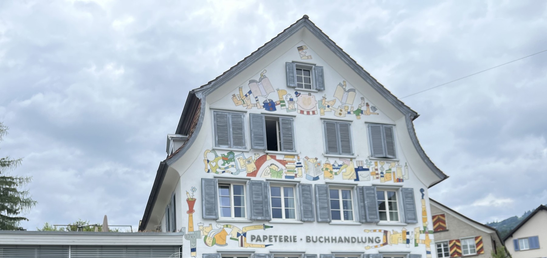 AnmeldenAm Altstätter Wohn- und Geschäftshaus Hans-Peter Enderlis prangt hoch oben ein getarnter Liebesbrief. Die Aussicht auf eine Erneuerung der Fassadenmalerei lässt den Künstler erschaudern.