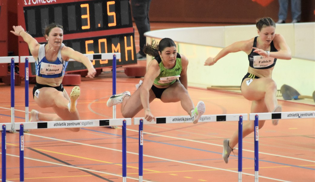Auch über 60 Meter Hürden an den Start ging Fabio Kobelt. Der 19-Jährige überzeugte: Im Halbfinal wurde er Zweiter, im Final Vierter. Im Halbfinal lief er mit 7,94 Sekunden einen neuen persönlichen Bestwert – und knackte diesen im Final mit 7,89 s erneut. Das ist ein eindrücklicher Leistungsausweis für einen Athleten, der erstmals an einer Schweizer Meisterschaft der Aktiven startet, wo die Hürden höher sind als im Nachwuchs.