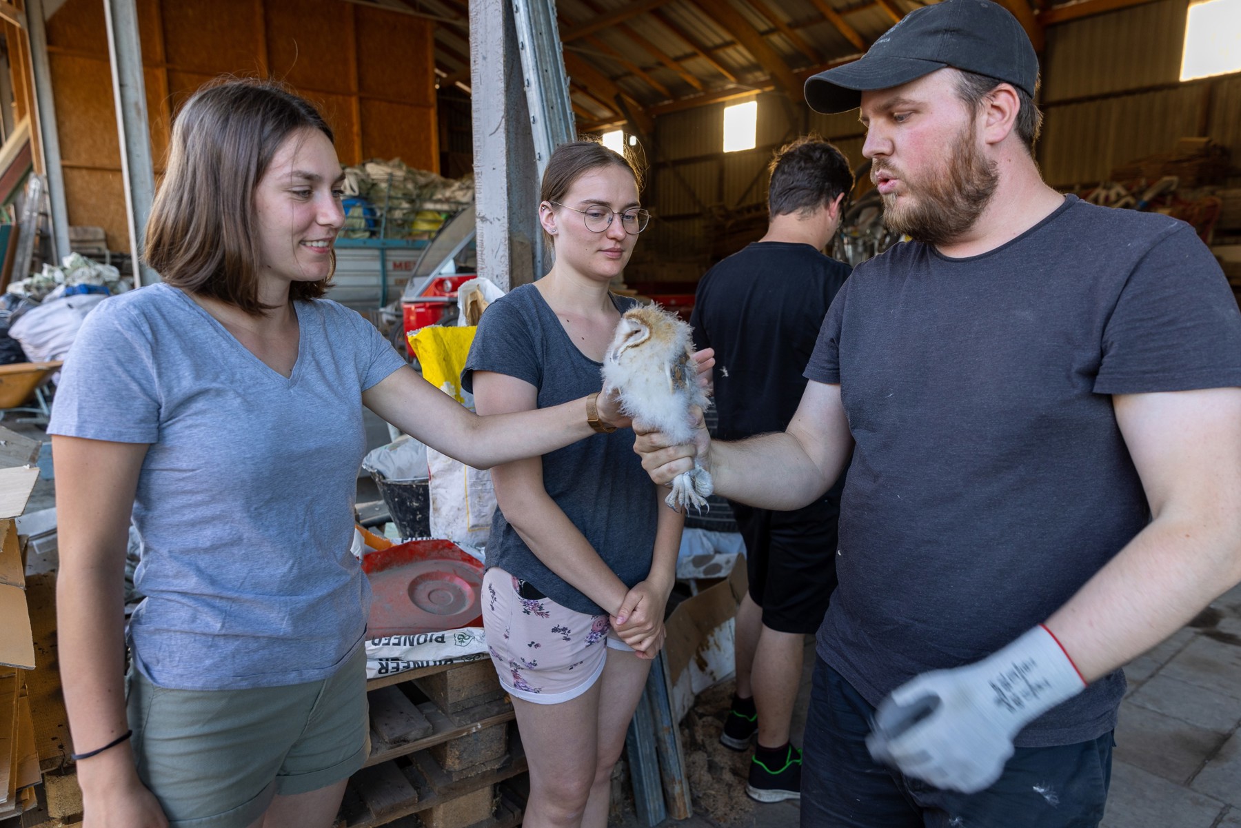 Die Schleiereulenfamilie auf dem Eichhof hat Nachwuchs, die Jungen wurden beringt und vermessen
