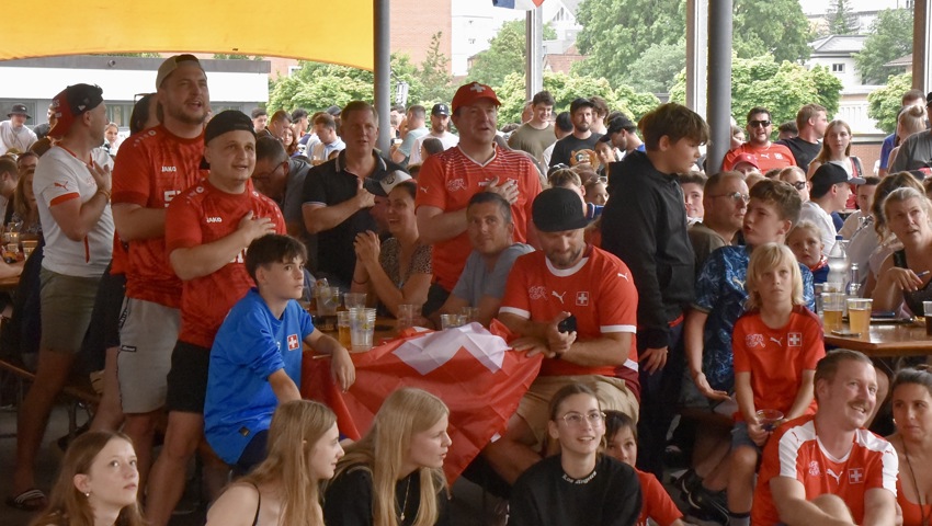 Damit hätte der FC Au-Berneck wohl auch nicht gerechnet: Die Schweiz schlägt Italien äusserst verdient mit 2:0 und zieht in den EM-Viertelfinal ein. Festwirt Thomas Eugster hebt nur den Daumen und zollt der Schweizer Mannschaft damit Respekt, abgesehen davon lichten sich nun die Reihen.