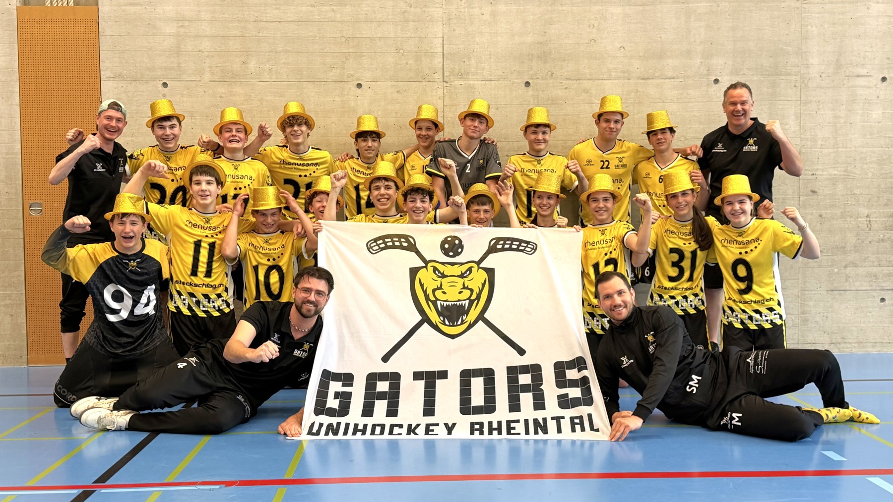 Die U16 der Rheintal Gators trat am letzten Wochenende in Unterägeri ZG zum Aufstiegsturnier an. Für dieses Finalturnier hatten sich die sechs Erstplatzierten der U16C-Gruppen qualifiziert, ein hohes sportliches Niveau war also sicher. Und die Rheintal Gators reisten mit breiter Brust an: Sie hatten ihre Qualifikationsgruppe nicht nur auf dem ersten Platz abgeschlossen, sondern auch mit der überragenden Tordifferenz von +81.