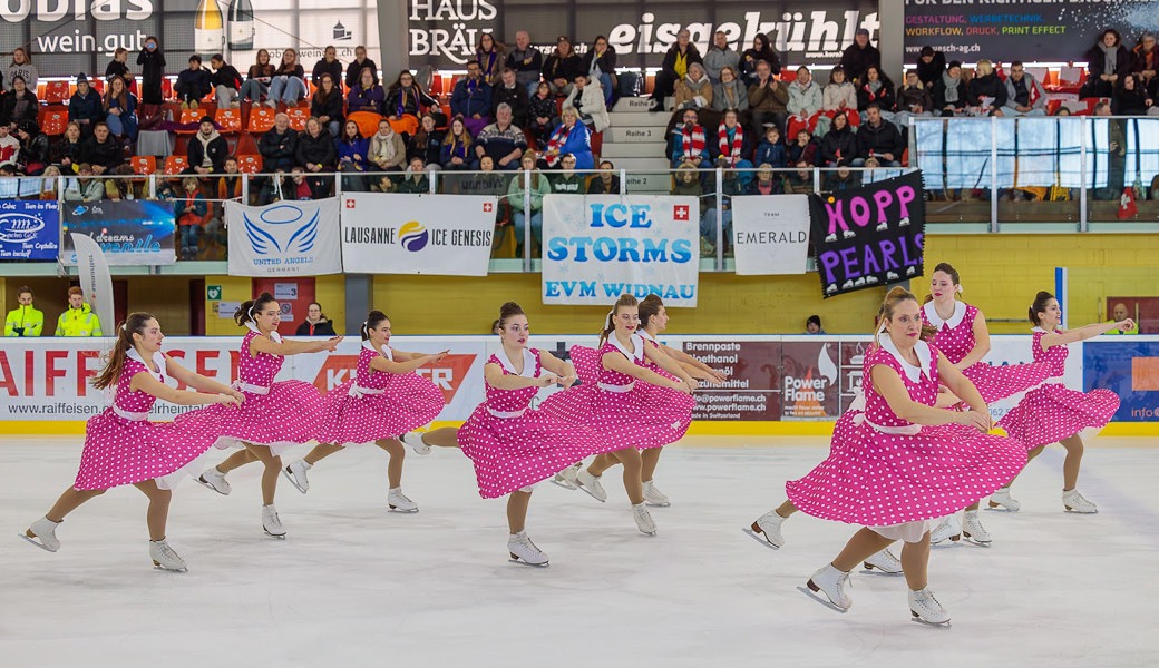 Am Sonntag galt es ernst für die Ice Storms. Das Team hatte die ganze Saison mit Ausfällen zu kämpfen, auch in Widnau konnte es nur mit elf statt mit zwölf Läuferinnen antreten. Ihr schön choreografiertes Programm zur Musik «Grease», gelaufen in pinken Kleidern, gefiel dem Publikum und brachte den Ice Storms fast 26 Punkte ein. Beim Schwierigkeitsgrad gab es Abzüge, obwohl sie im Block-Element, in den Pirouetten und im Rad den geplanten Level und gute Noten für die Ausführung erhielten. Am Schluss landeten die Ice Storms mit einem Hundertstel hinter dem polnischen Team auf Platz zehn; der künstlerische Wert allein hätte Rang sieben bedeutet. Nun hoffen die Ice Storms, sich bis zum nächsten Wettkampf in Basel noch zu steigern.