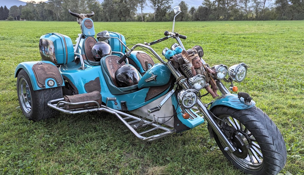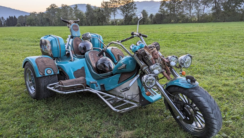 Das Vorderrad gleicht einem Chopper, die Fahrerposition ist ebenso tief. Hinten hat das Trike zwei Sitze, dahinter arbeitet bei neueren Baujahren meist ein amerikanischer V8-Motor – zu Beginn waren es VW-Käfer-Motoren. Ein urchiger Bayer sagte: «Vorn ein Motorradl und hinten ein Auto.»