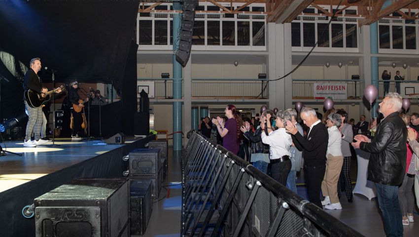 Am letzten Wochenende war es nun so weit: Der erste von vier Anlässen für die Mitglieder der Raiffeisenbank Unteres Rheintal fand in der Rheinauhalle statt. Und er entpuppte sich als Vollerfolg. Über 600 «Rhintlerinnen» und «Rhintler» strömten in die Halle, in der Schlagerstar Nik P. seine Hits zum Besten gab.