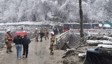Die Räumung des Bachbetts der Dornbirner Ach erfolgt laufend durch zwei Bagger der Firma Halbeisen und Prast. Sie waren auch in den Nachtstunden im Einsatz. Die aktuell kalten Temperaturen haben den Abfluss etwas gebremst, es ist aber mit weiteren Abgängen zu rechnen. Die Lage wird laufend beobachtet.