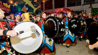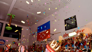 In Oberriet herrschte beim Maskenball unter dem Motto "Aloha" ausgelassene Fasnachtsstimmung. Die fünf Guggen Törggabenglar, Bazzaschüttler, Bleandastöber, Guggesuuser und Rii-Jooli heizten dem Partyvolk in der ausverkauften Mehrzweckhalle Burgwies tüchtig ein.