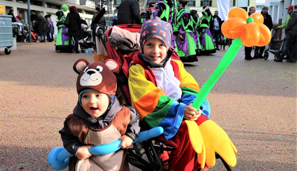 Nach dem Auftritt der Bernecker Guggesuuser eroberten verkleidete Kinder die Bühne «Am Markt» in Heerbrugg. Das Einkaufszentrum bot am Samstagnachmittag Fasnachtsstimmung mit Guggenkonzert, Ballonkünstlerin und Imbissstand. Das Programm zog natürlich bei Familien, aber auch Passanten blieben stehen und genossen die Unterhaltung.