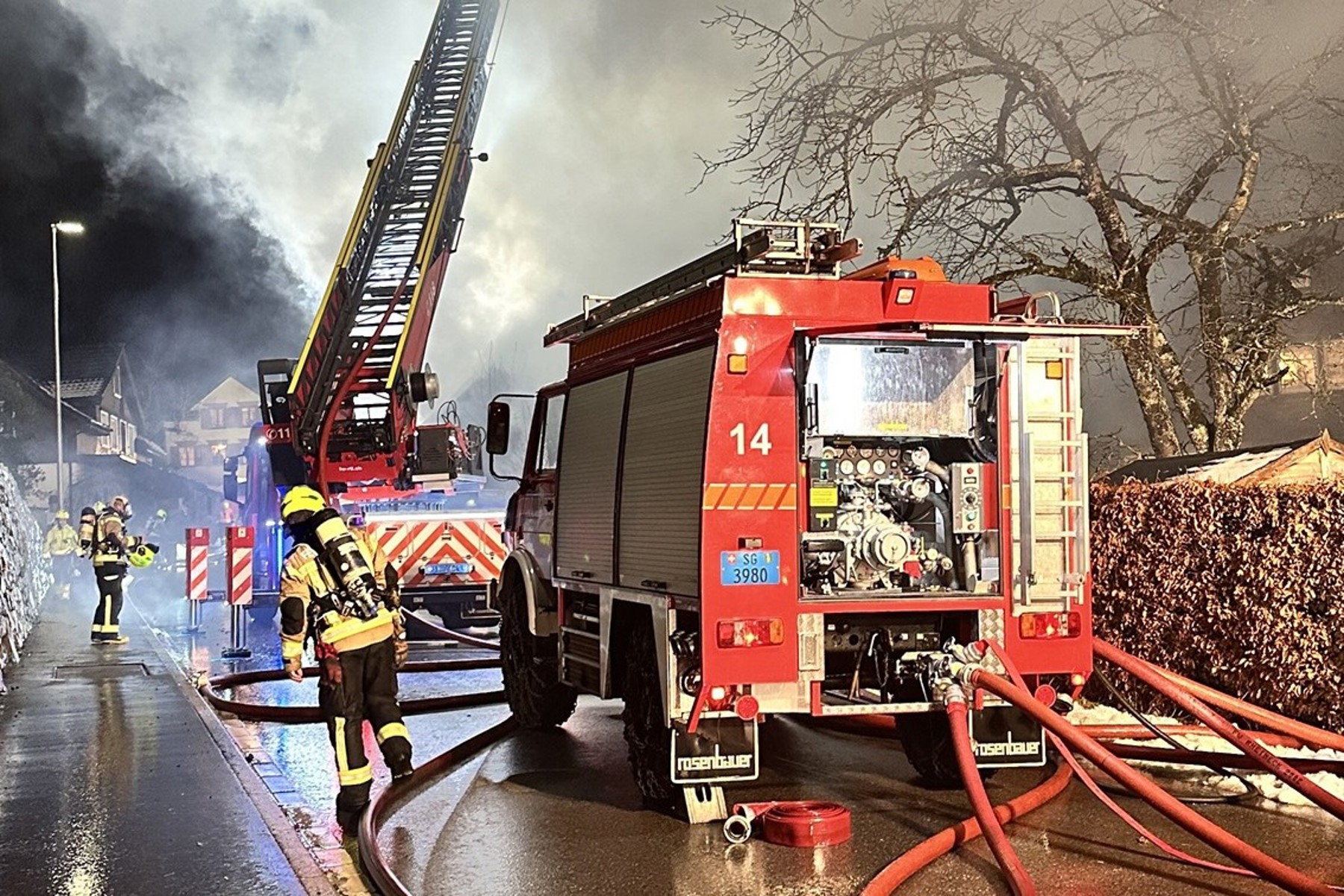 Kurz vor 21 Uhr ging bei der Kantonalen Notrufzentrale in Herisau die Meldung ein, dass in Wienacht-Tobel, Bereich Tolen, starker Rauch aus dem Dach eines Doppelhauses sichtbar sei. Die aufgebotenen Einsatzkräfte stellten bei ihrem Eintreffen ein offenes Feuer sowie eine starke Rauchentwicklung fest.