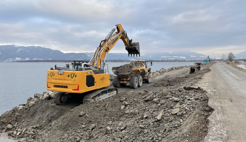 Mit den Arbeiten werden die Dämme im Bereich, wo das Flussbett in den See hinaus verlängert wurde, für den Fall eines grösseren Hochwasser verbessert.