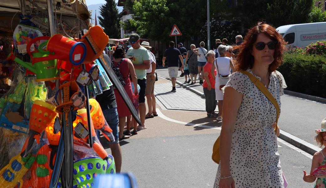 Trotz brütender Hitze herrschte am Sonntag grosser Andrang auf dem Hauptmarkt der Diepoldsauer Kilbi. Vor dem Mittag genossen die Kilbi-Gängerinnen und -gänger Softeis, die kühle Brise bei einer Fahrt mit den Bahnen auf dem Rummelplatz und das Angebot an Waren.