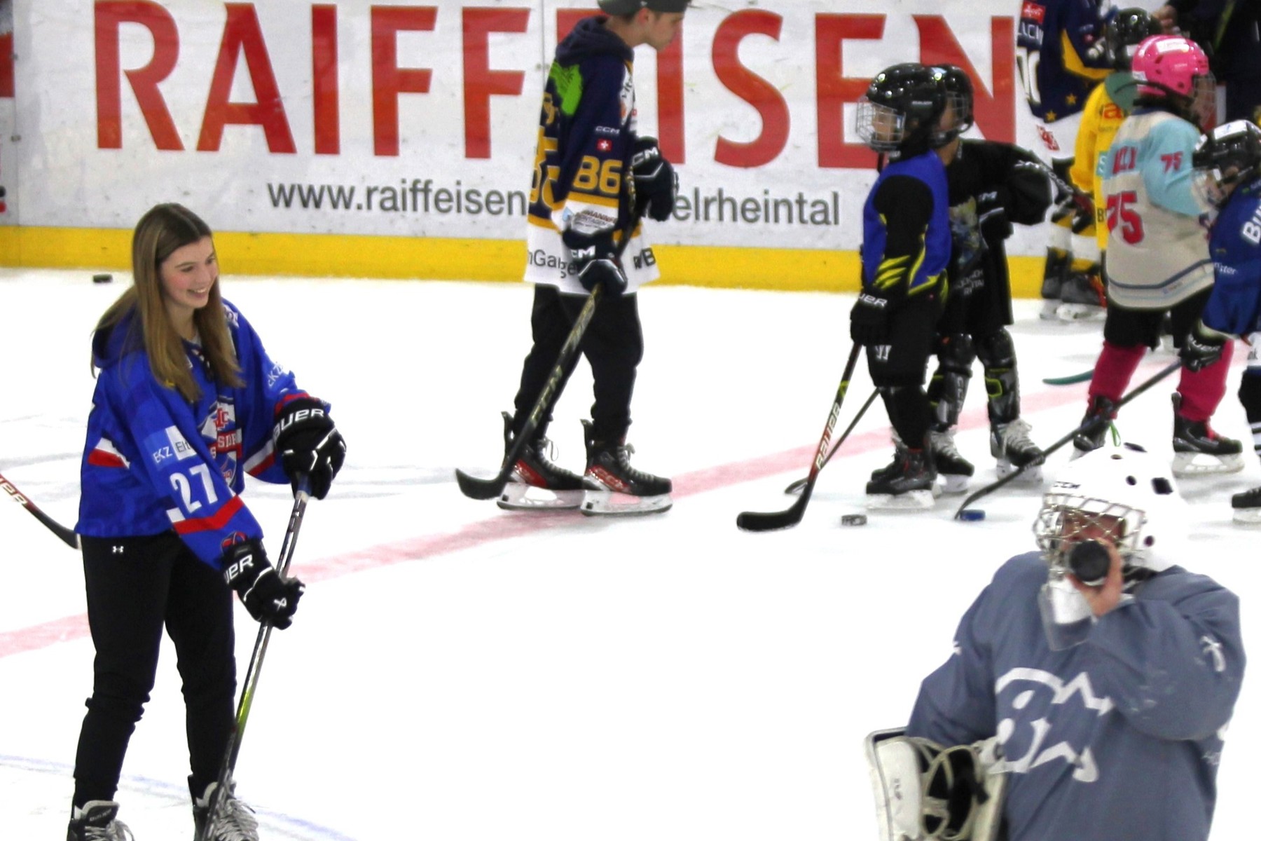 Dario Bartholet, Yanick Lichtensteiger, Gian-Marco Wetter, Jonas Taibel und Emma Maria Kohler haben nicht nur gemeinsam, dass sie in Widnau dabei waren. Sie haben alle auch einmal im SCR-Nachwuchs gespielt und sind gekommen, um dem Verein etwas zurückzugeben. Sie zeigten sich und ihr grosses Können den vielen strahlenden Kindern und liessen den Swiss Ice Hockey Day 2025 unvergesslich werden.