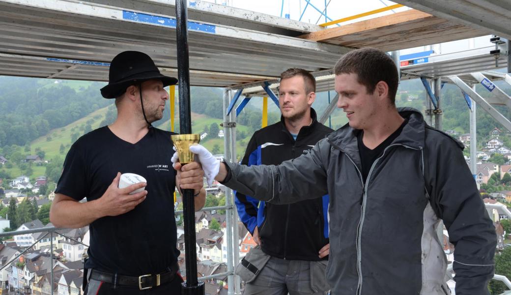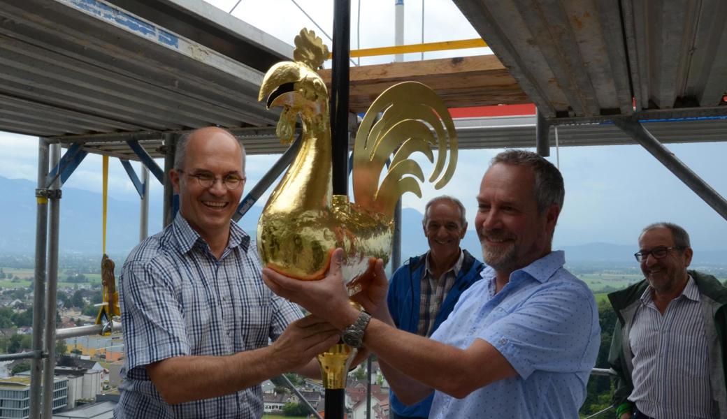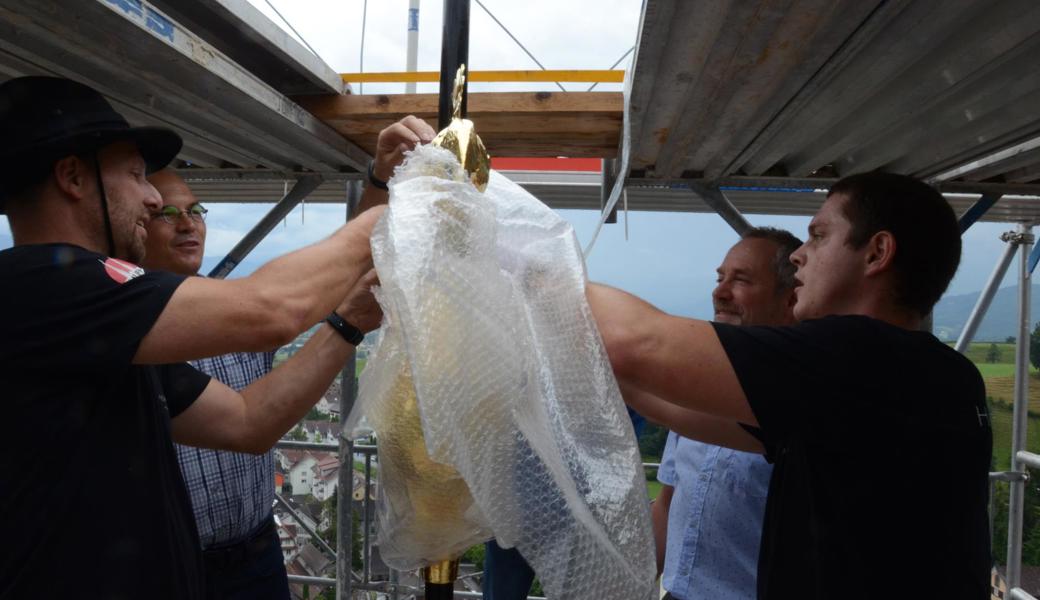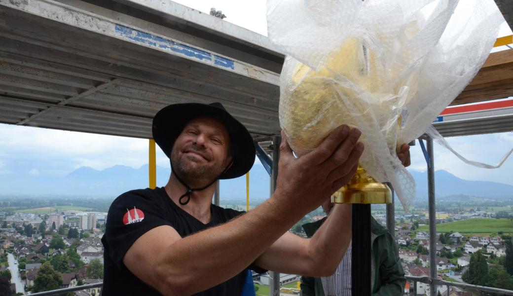 Die Turmkugel , das Kreuz und der Güggel sind wieder zurück. Die grossen Arbeiten im Zuge der Aussenrenovation der katholischen Kirche in Altstätten sind abgeschlossen. Diese Woche beginnt der Rückbau des Gerüsts. Bis Oktober dieses Jahres sollte die Sanierung abgeschlossen sein.