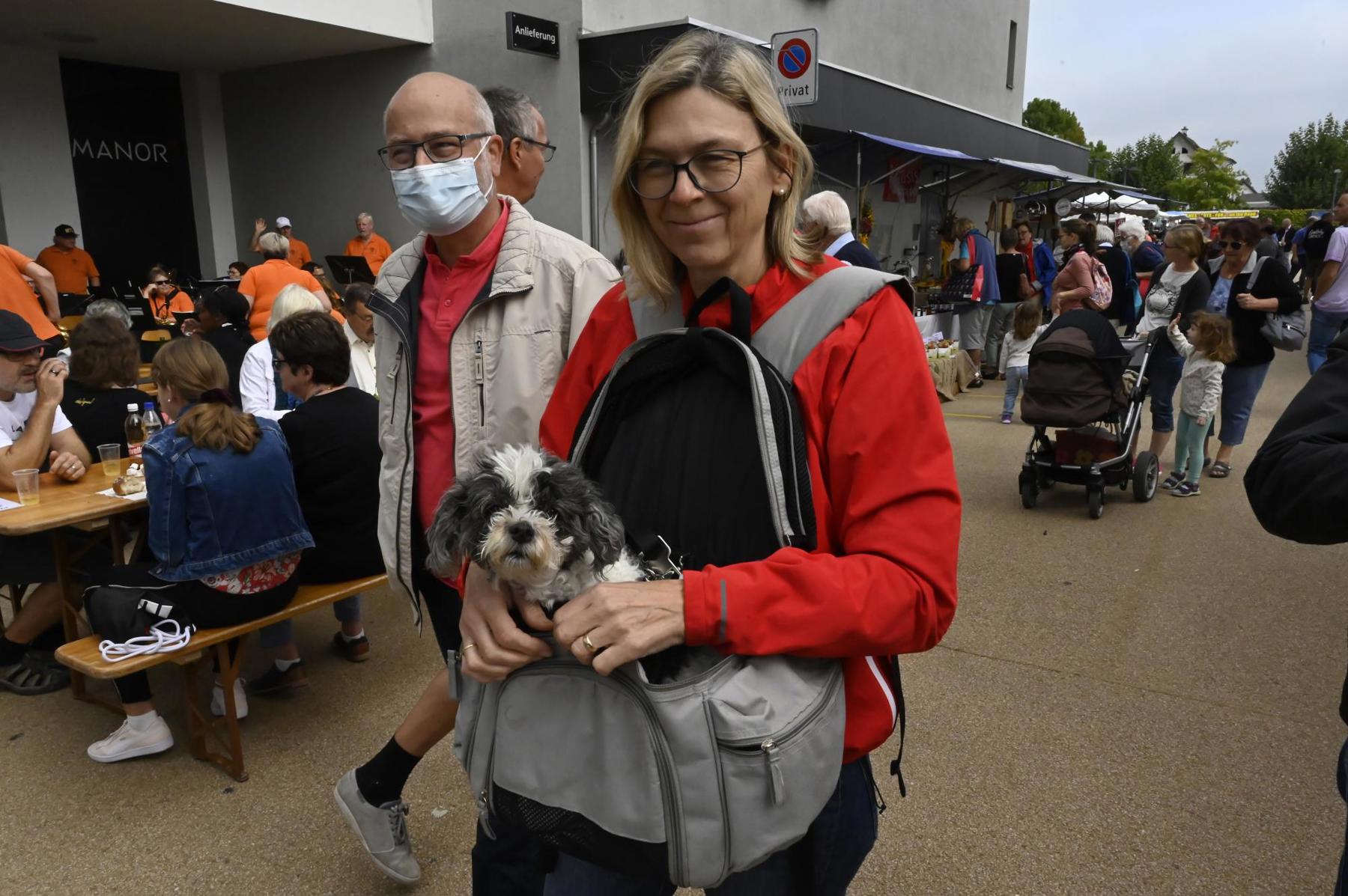 Während die meisten Städte und Gemeinden einen grösseren Markt nach dem anderen absagen, führten der Verein Pro Heerbrugg und die Gemeinde Au am Samstag den Heerbrugger Herbstmarkt durch. An Corona erinnerte nebst den Abstand gebietenden Markierungen vor den Marktständen, den alle paar Meter platzierten Desinfektionsmittelspendern und einzelnen Marktbesuchern mit Hygienemaske kaum etwas.58 Stände hatte Marktchef Markus Hofstetter am Mittag auf seiner Liste, was nicht weniger sind als andere Jahre, sondern deutlich mehr. «Die Markthändler sind dieses Jahr froh um jede Verdienstmöglichkeit, die sich bietet», erklärte er.Der Heerbrugger Herbstmarkt hätte freilich das Potenzial, noch grösser zu werden. Er erstreckte sich zwar vom Coop Parkplatz bis in den Schmidheinypark – zwischen vielen Ständen wäre aber noch Platz für weitere gewesen. Wie immer an den grossen Heerbrugger Märkten im Mai und im September gehen auch viele Geschäfte mit einem Stand auf den Platz hinaus. Darunter dieses Jahr auch zwei, die ihr Geschäft hier erst in einigen Wochen eröffnen werden: Brot & Comestible und Thai & Sushi Away. Bei Cosmodog stellte ausserdem der Widnauer Fotograf Diego Dengg grossformatige Hundeporträts aus. Und Coiffure Carmen feierte mitten im Marktgeschehen das 30-jährige Bestehen.Wo bleibt nur der Dirigent?Nicht nur die Läden am Platz und die Marktfahrer schätzten es, dass der Markt durchgeführt wurde, sondern auch die vielen Besucher. Man merkte ihnen an: Dieser Schritt zurück in die Normalität tut gut. Die meisten fanden sich gegen Mittag ein. Dann sollte nämlich der Musikverein Heerbrugg aufspielen. Die Musikantinnen und Musikanten sassen auch bereit – begannen aber nicht zu spielen, weil der Dirigent fehlte. Schliesslich sprang jemand aus dem Publikum ein: Daniel Gebert.Nun ist es nicht so, dass dies jeder gekonnt hätte. Geberts Frau spielt aber im Verein mit und er selbst hat schon diverse Male als Dirigent ausgeholfen. Dass er ausgerechnet an diesem Tag ein oranges T-Shirt trug, genau wie die Musikantinnen und Musikanten, sei barer Zufall, versicherte er: «Eigentlich wollte ich hier mit den Kindern Zmittag essen.» Als nach gut einer halben Stunde Dirigent Thomas Wieser doch noch eintraf – er lebt in Deutschland und war im unerwartet dichten Wochenendverkehr nicht vorwärts gekommen – sah man ihm an, dass er froh war, dass sich solche Zufälle manchmal einfach so ergeben.