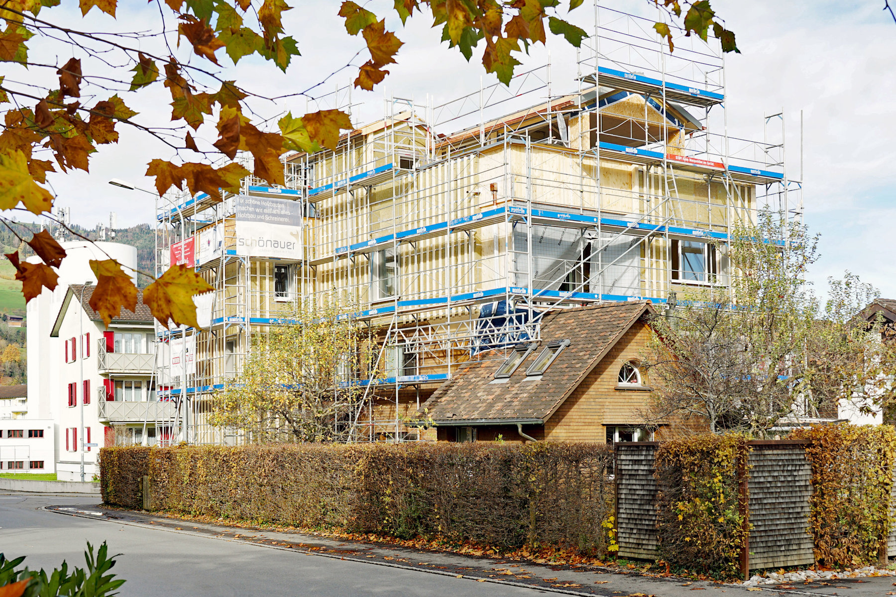 AnmeldenEin Neubau über einem älteren Einfamilienhaus? Zwischen traditionellem Schindelhaus und moderner Architektur wird an der Elsenackerstrasse in Altstätten ein besonderes Projekt realisiert. Das steckt hinter dem markanten «Überbau».