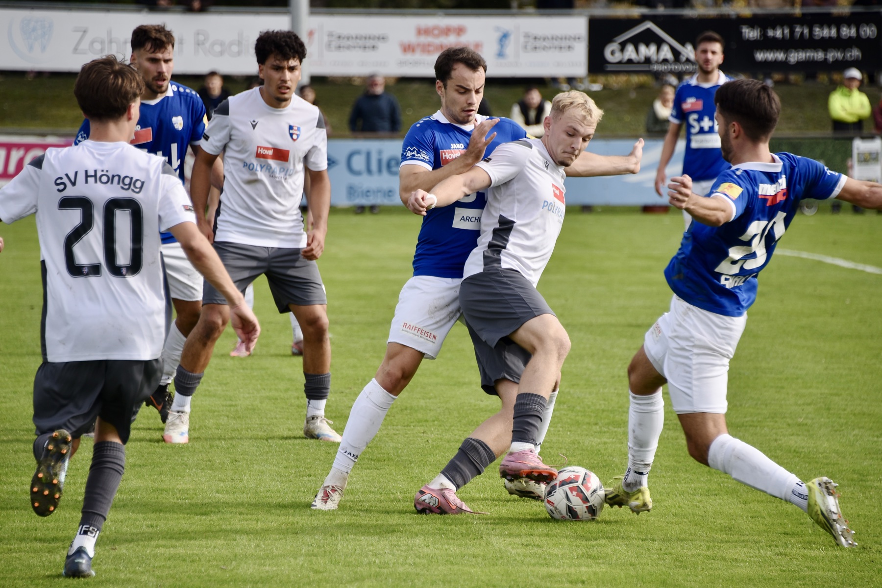 Das Spiel entschied dann aber der SV Höngg für sich. In der 80. Minute kamen die Gäste zu einem Penalty, der wohl berechtigt war – kein Widnauer reklamierte, was doch immer ein aussagekräftiger Massstab ist. Danach suchte Widnau den Ausgleich, während Höngg sich auf das Halten des Resultates beschränkte und innert zehn Minuten vier gelbe Karten sammelte. Für Widnau reichte es aber nicht mehr – die letzte, sehr gute Chance vergab Raoul Marino in der 93. Minute aus kurzer Distanz.
