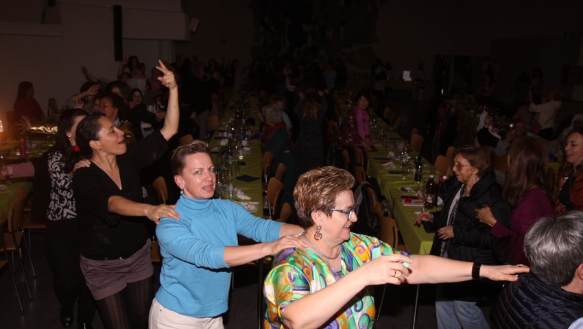 Nach einer kurzen Stärkung ging es gleich weiter mit Manu Oesch-Olowu und Angela Federer mit rockig-bluesigem Sound. Nach dem Dessert lud die Stimmungskanone Darinka Valenti die Frauen zum «Kalorienverbrennen» ein, zu einer, stimmungsvollen Polonaise.
