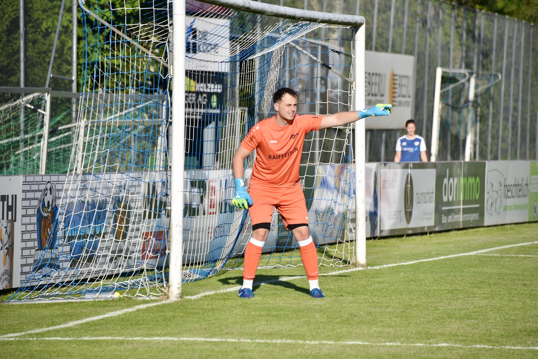 Zurück an den Anfang des Nachmittags. Joris Hallauer, der Ersatztorhüter, und Joel Eugster bereiten sich auf den Einsatz vor. Die beiden verstehen sich wortlos. Sie machen das Programm, wie man es in ähnlicher Weise überall sieht. Joris schiesst oder wirft und Joel fängt. Wenn eine Abwehr besonders gut gelingt, spendet der Ersatzgoalie Applaus.