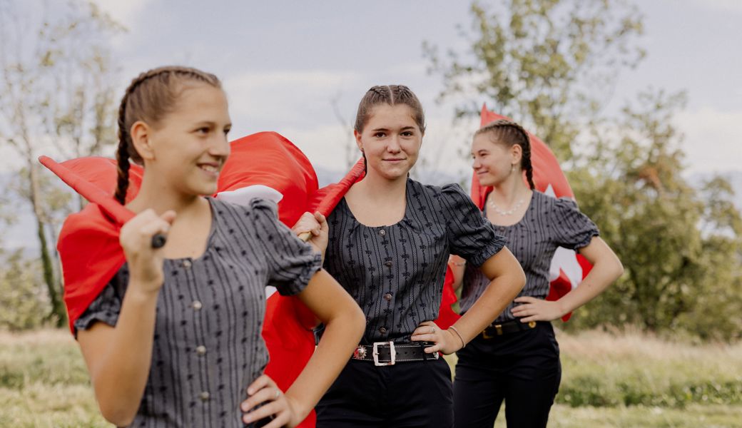 Elina (18), Sinja (16) und Neelia (14) sind in der Fahnenschwinger-Szene zwar noch neu, doch sie haben ein klares Ziel: die Schweizer Volkstraditionen bei der jungen Generation populärer zu machen. Elina lacht und sagt:
