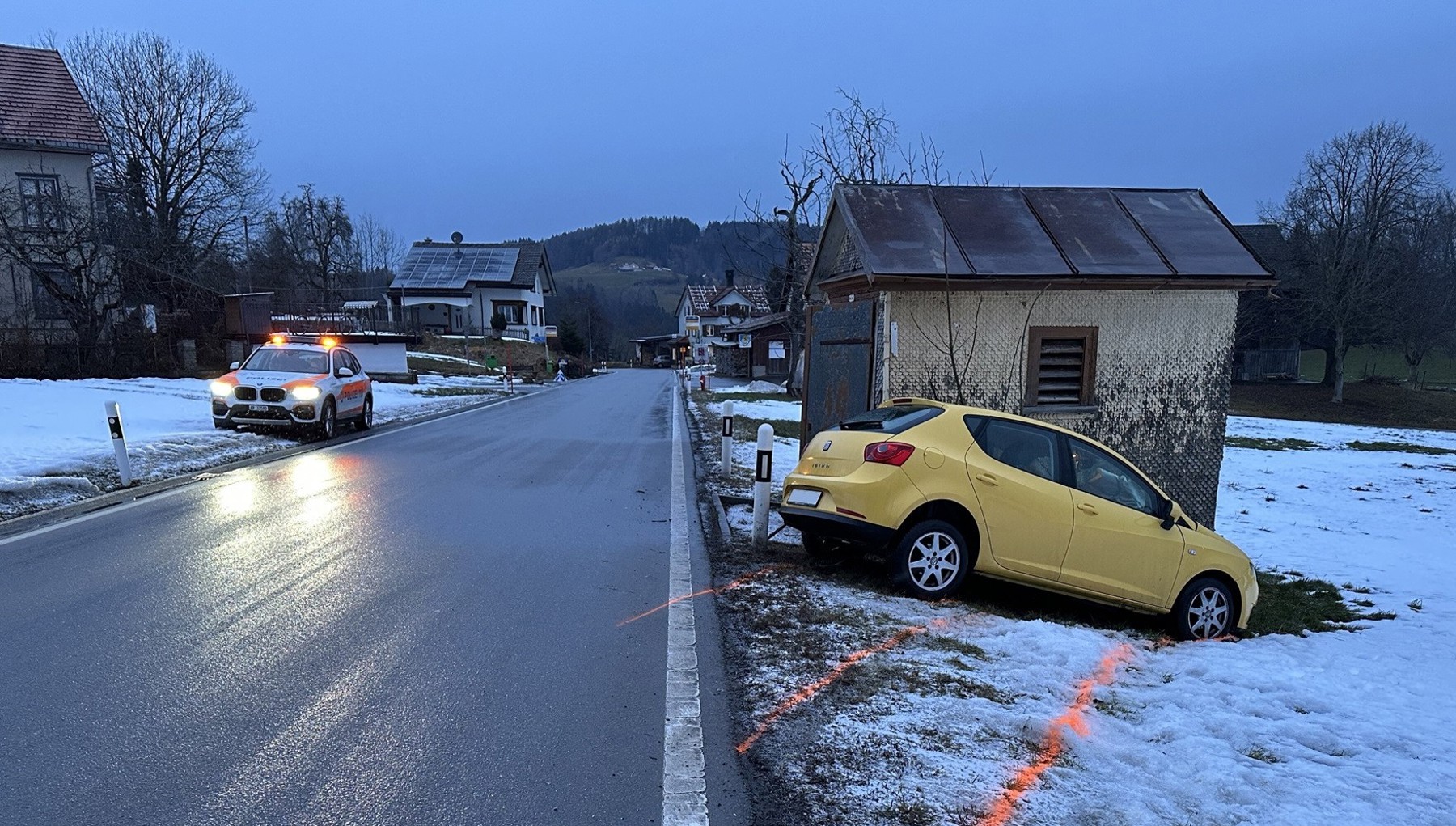 Um 6.40 Uhr am Montagmorgen war eine 18-jährige Autofahrerin von Altstätten in Richtung Reute unterwegs. Bei der «Steingocht» verlor sie wegen der winterlichen Verhältnisse ausgangs einer Linkskurve die Herrschaft über ihren Wagen, wie die Kantonspolizei Appenzell Ausserrhoden in einer Mitteilung schreibt. Die junge Frau geriet über den rechten Fahrbahnrand hinaus und kollidierte mit einer kleinen Remise. Verletzt hat sie sich dabei nicht, aber es entstand ein Sachschaden von mehreren Tausend Franken.
