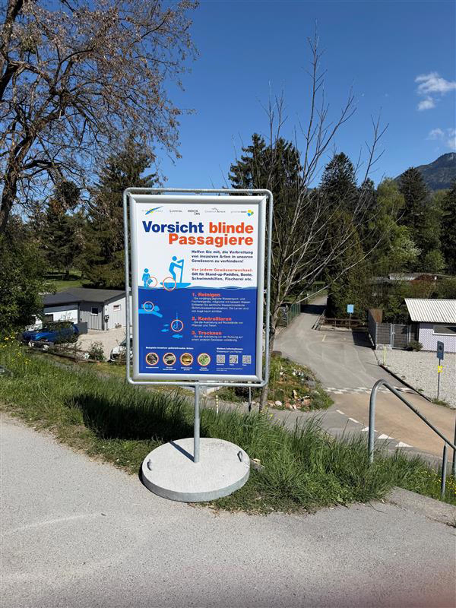 Um eine Ausbreitung im Alten Rhein zu verhindern, setzt die Gemeinde auf flächendeckende Information der Bevölkerung. Ab morgen Freitag, 1. Mai, stellen die Gemeinden an allen wichtigen Zugängen zum Alten Rhein Hinweistafeln auf. Allein in Diepoldsau sind etwa zwölf Standorte vorgesehen. Begleitend zur Plakataktion wird die Bevölkerung über alle Informationskanäle informiert.