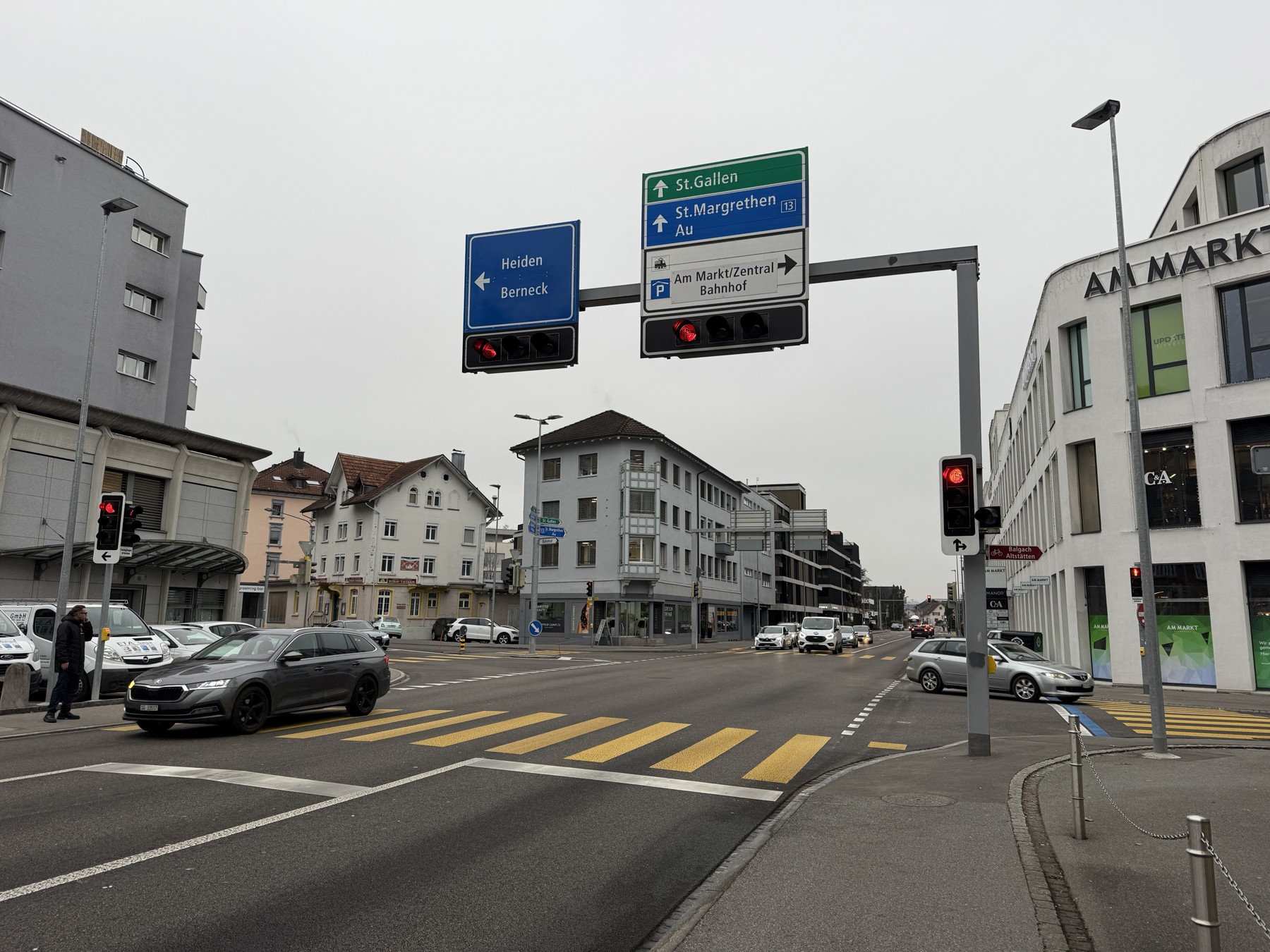 AnmeldenDie Kreuzung im Zentrum von Heerbrugg ist für viele ein wichtiger Verkehrsknotenpunkt. Am Mittwochnachmittag waren kurz vor 14 Uhr alle Ampeln ausser Betrieb.