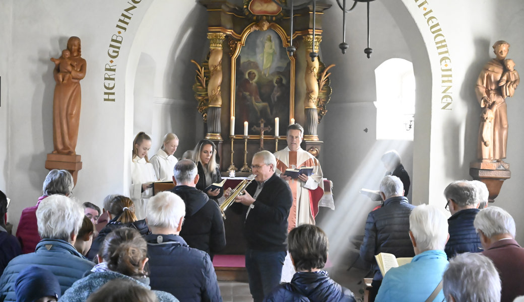 Priester Simon Niederer gestaltete zusammen mit den Musikanten Norbert Klien am Keyboard und Pirmin Hutter an der Trompete einen feierlichen Gottesdienst.