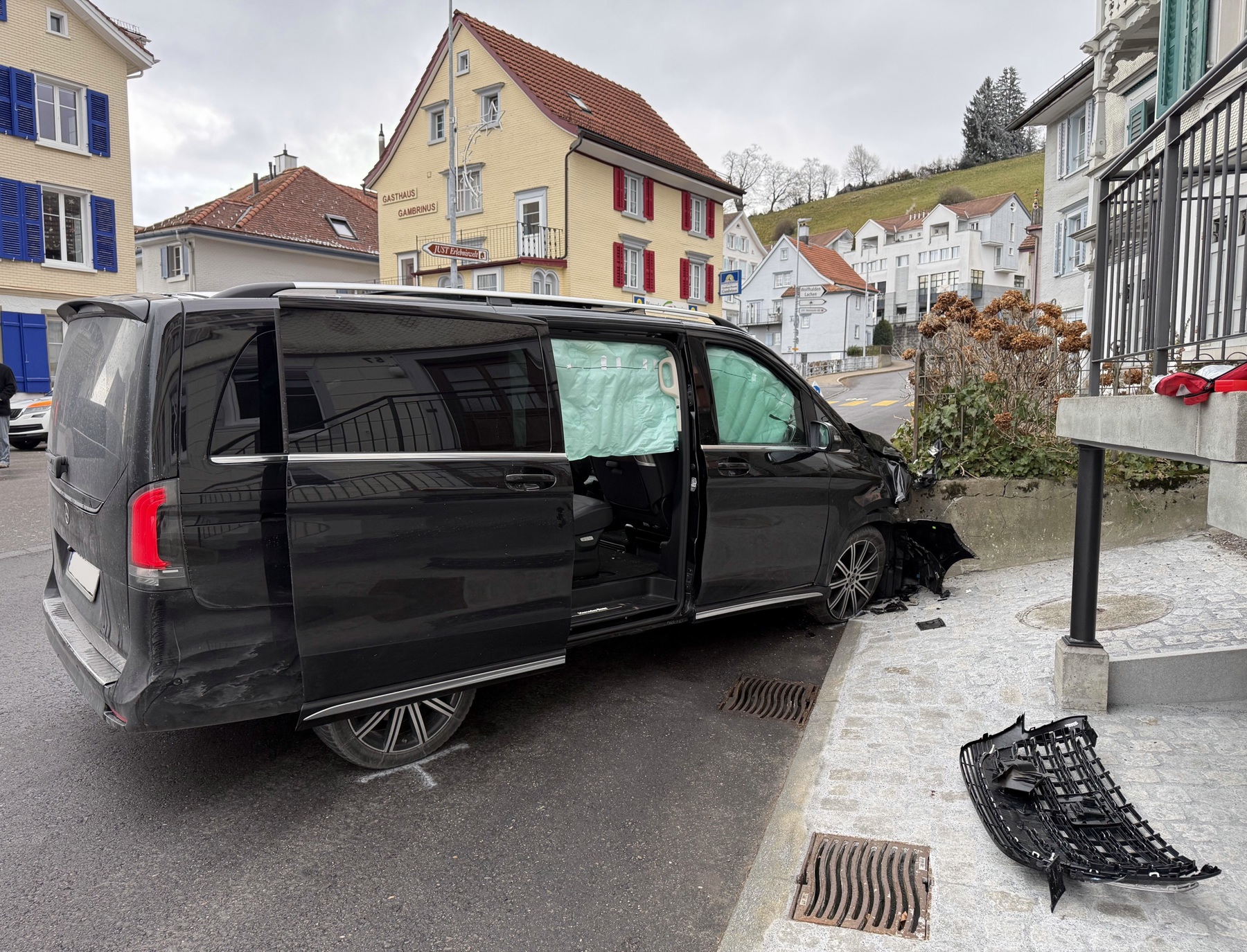 Kurz vor 14 Uhr fuhr ein 49-jähriger Mann mit einem Kleinbus von Lutzenberg in Richtung Walzenhausen-Guetli. Nach einer Rechtskurve im Bereich Dorf geriet er über den rechten Strassenrand hinaus und kollidierte mit einer Stützmauer.