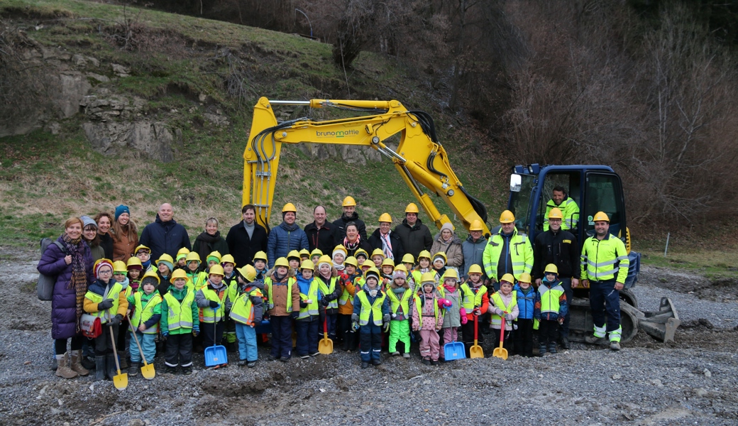 Kleine Baumeister packen beim Spatenstich für den neuen Kindergarten an