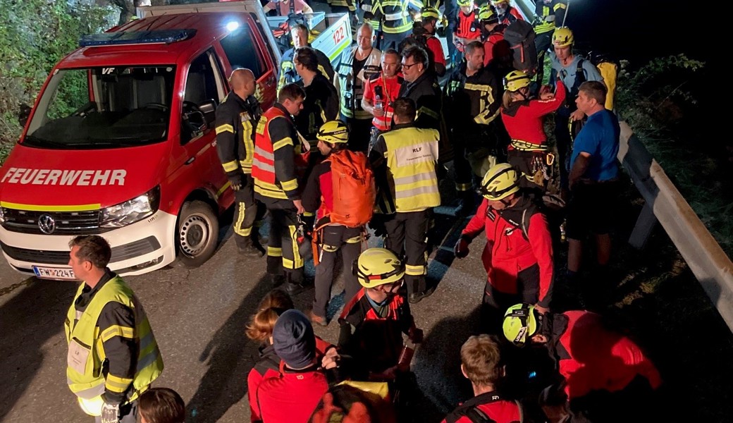 Die Männer gelangten fast bis zum Ausstieg aus der Felswand. Da einer aus der Gruppe den Klettersteig aber nicht weiter bewältigen konnte, stieg die Gruppe wieder ab. Dabei stürzte ein 45-Jähriger aus der Gruppe auf Grund von Erschöpfung ins Seil, blieb kopfüber hängen und konnte von den anderen nicht aus der misslichen Lage befreit werden.