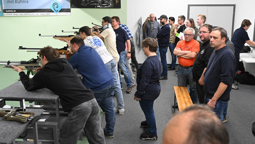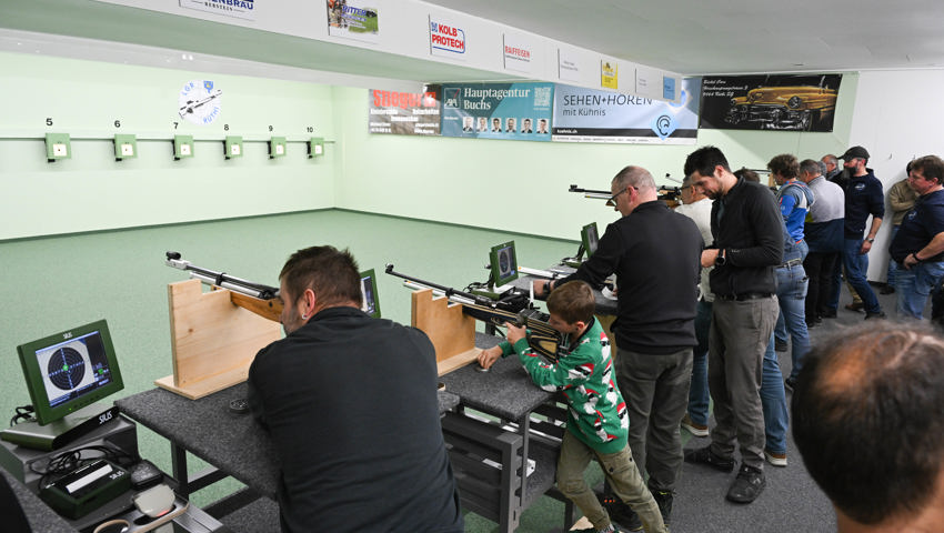 Die Dorfmeisterschaft nahm 1986 ihren Anfang, letztes Jahr waren 476 Schützinnen und Schützen dabei. «Es wäre schön, würden wir heuer auf etwa 450 Teilnehmende kommen», sagte Haltiner. Es wurden einige mehr: 491 Schützinnen und Schützen haben am Plauschanlass teilgenommen. Bei 20 Wertungsschüssen pro Teilnehmenden waren es in der Abrechnung 9820 Diabolos, wie die Munition für Luftgewehre heisst, die auf die zehn Meter entfernten Scheiben «geworfen» wurden.