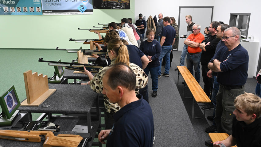 «Der Donnerstagabend in der zweiten Woche der Meisterschaft ist erfahrungsgemäss am besten besucht», sagte Haltiner, der die LGR seit August präsidiert. Was sich bereits auf dem Parkplatz abzeichnete, führte sich im Schiessstand fort: Die zehn Schiessplätze waren ständig belegt. Weil es bei der Dorfmeisterschaft um Plausch, Kameradschaft und gemütliches Beisammensein geht, konnten allfällige Wartezeiten nebenan in der Schützenstube, wo das umtriebige Restaurant-Team um Beate Gehring viel zu tun hatte, überbrückt werden.