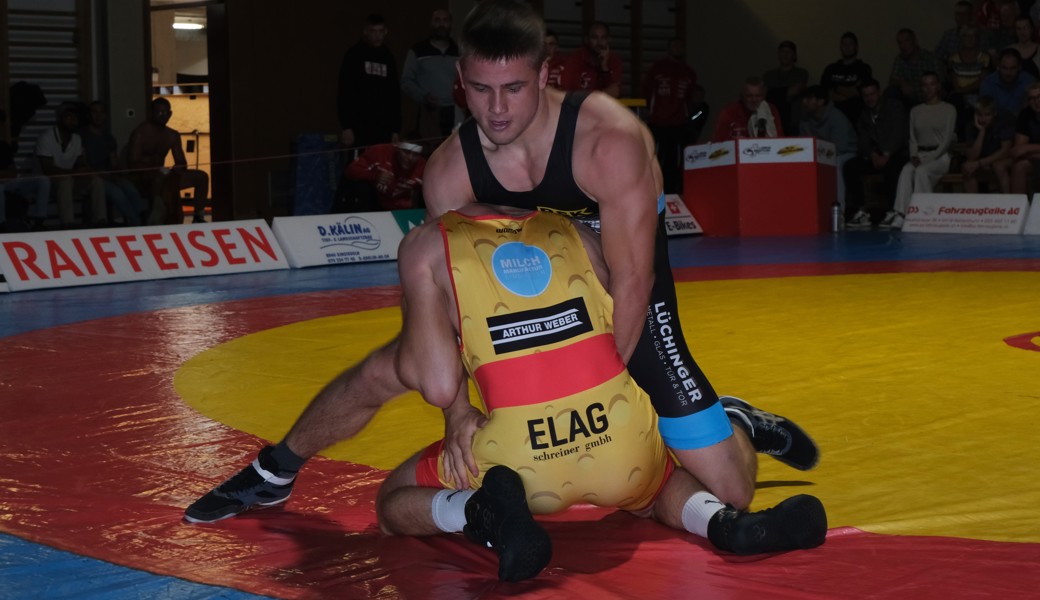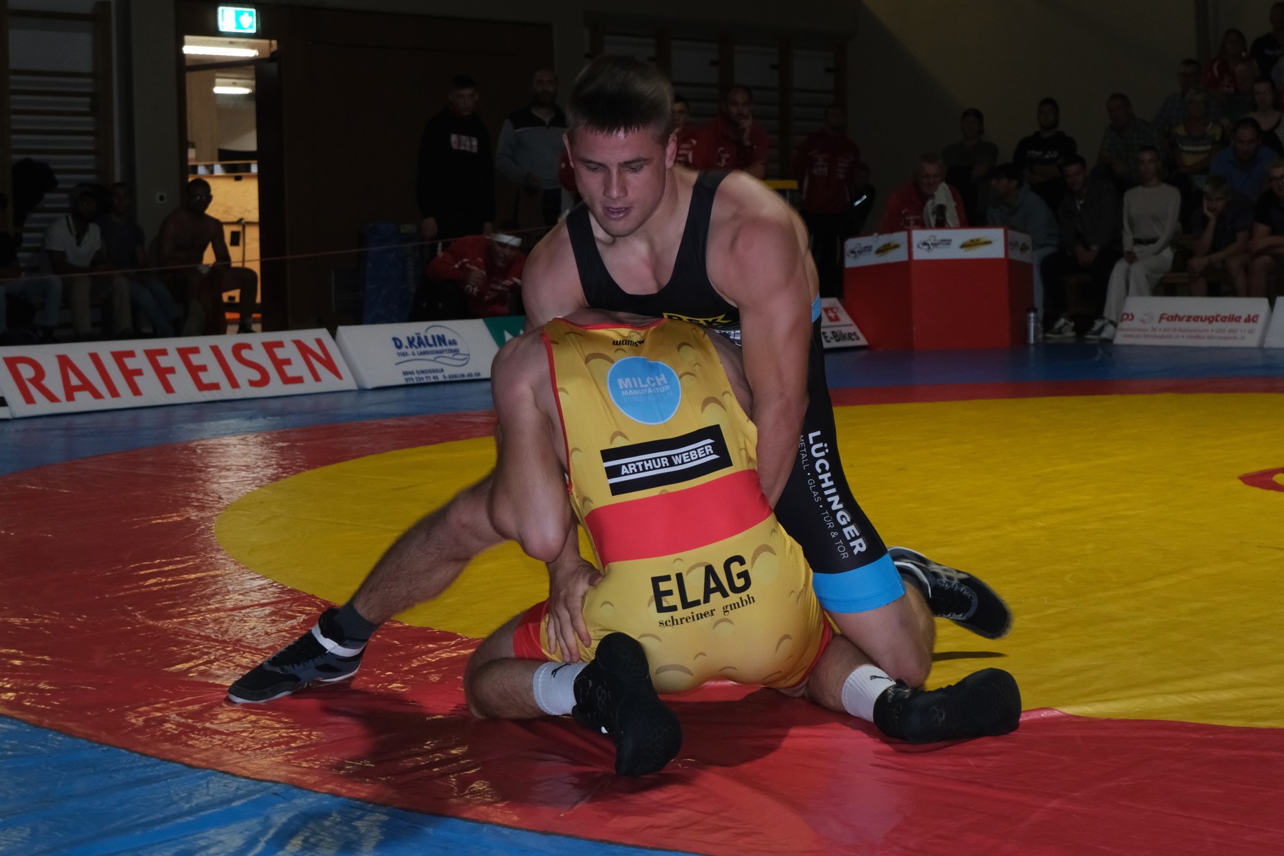 Zum Auftakt gab es bis 57kg Greco ein Generationenduell, in dem Manuel Zäch auf Oleksander Golin traf. Golin ging mit zwei starken Aktionen in Führung, doch bei einer sehenswerten Schleuder von Zäch verletzte sich der Einsiedler am Ellbogen – und konnte nicht mehr weitermachen. Im Schwergewicht bis 130kg Freistil ging es zwischen Sven Neyer und Damian Dietsche zu Beginn deutlich gemächlicher zu und her. Nach zwei Passivitätspunkten Neyers wagte Dietsche einen Angriff, der prompt gekontert wurde. Doch der Kriessner gab nicht auf und schaffte mit einem weiteren Angriff zwei Zähler zum Endstand von 10:2.