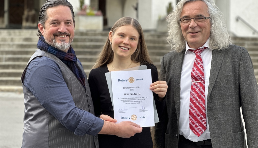 Rotary-Past-Präsident Martin Böhringer und Sandro Hess, Leiter Berufsdienst, gratulierten Seraina Kunz zu ihrem grossen Erfolg und überreichten ihr in feierlichem Rahmen den Förderpreis 2024. Dieser soll ein Ansporn sein, weiterhin Bestleistungen zu erbringen.