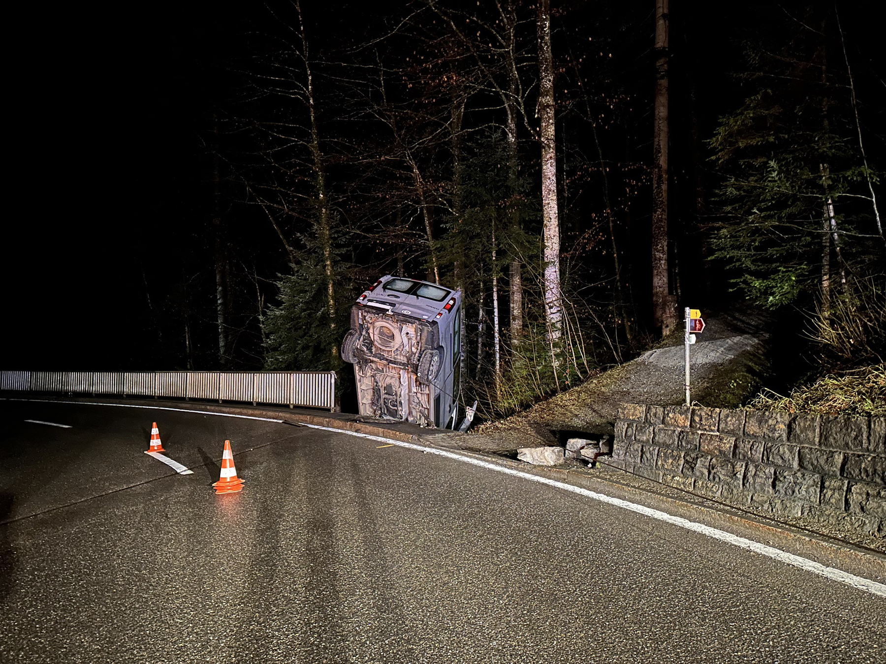 Lieferwagen durchschlug das Brückengeländer und stürzte fast ins Bachtobel