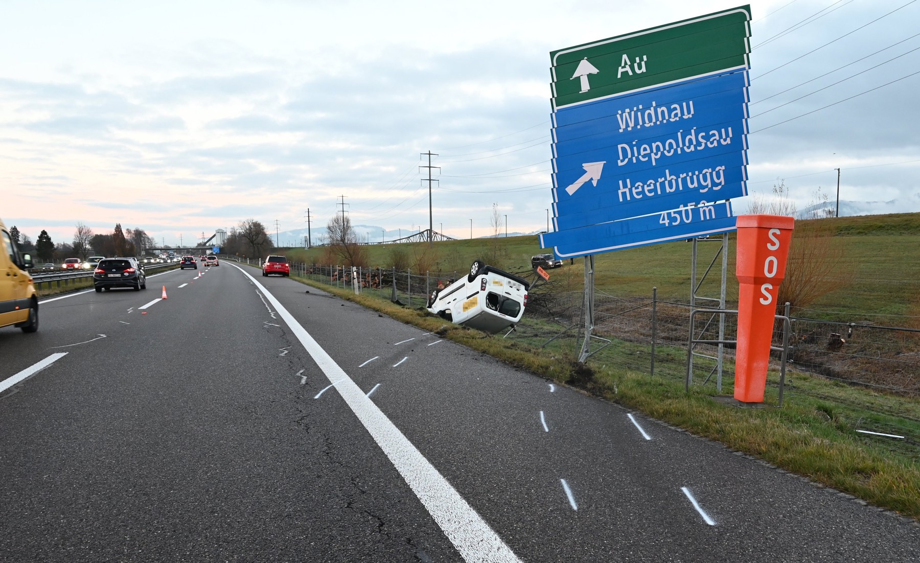 Ein 51-jähriger Mann fuhr um 6.40 Uhr auf der Autobahn A13 von Chur in Richtung St. Margrethen. Zur gleichen Zeit fuhr ein 34-jährige Mann mit seinem Lieferwagen vor ihm in dieselbe Richtung. Der 51-Jährige bemerkte den vor ihm fahrenden Lieferwagen zu spät und leitete eine Vollbremsung und ein Ausweichmanöver nach rechts ein. Trotzdem stiess das Auto mit dem Lieferwagen zusammen, teilt die Kantonspolizei mit.