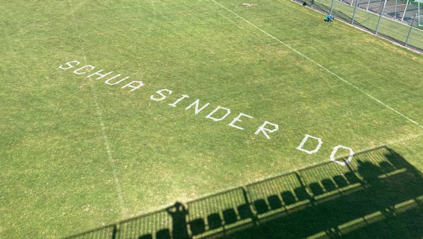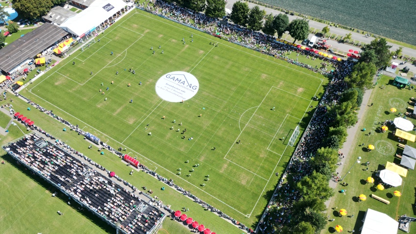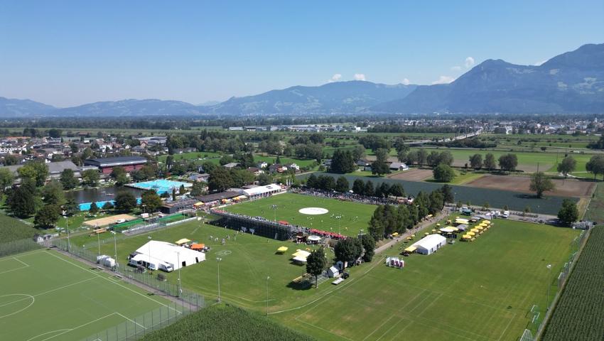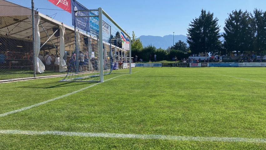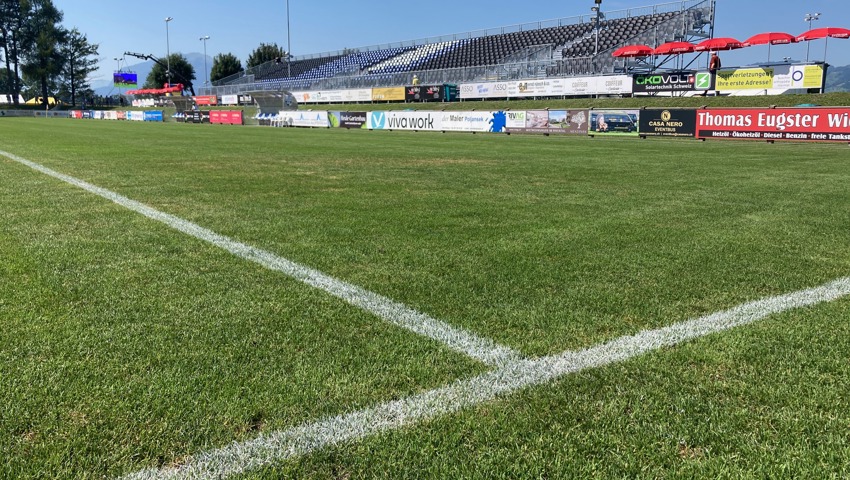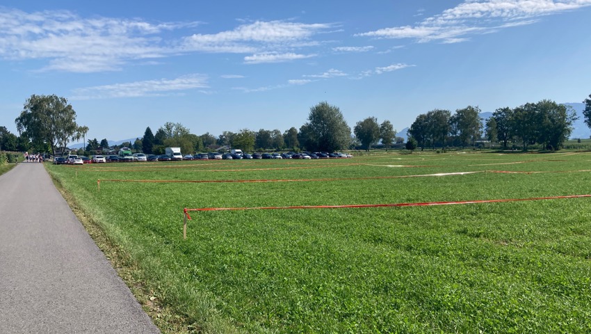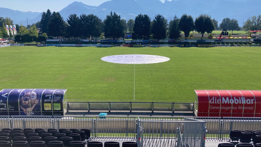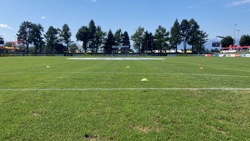 11.56 Uhr - Da hat Platzwart Marco Lüchinger ganze Arbeit geleistet, denn seine Aufgabe war keine einfache: Vor einer Woche wurde der Rasen vom Grenzlandturnier der Faustballer stark beansprucht. Der eine oder andere kleine Fletschen ist noch zu sehen - der Rasen sieht aber tiptop aus und ist bereit für das grosse Spiel.