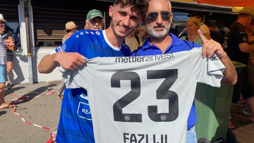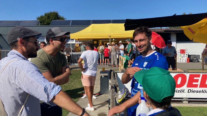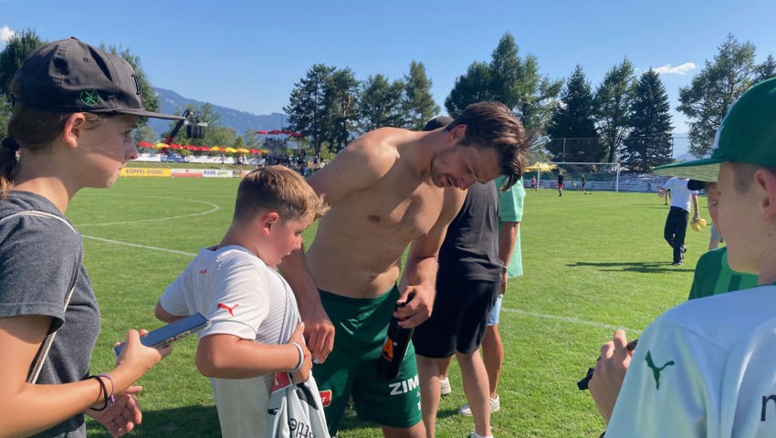 12.50 Uhr – Betim Fazliji begibt sich zurück in die Kabine. Der Rebsteiner hält dabei mehrmals an, posiert für Bilder. Die Kinder werben bereits jetzt mit Kartontransparenten um das Trikot des Defensivspielers.