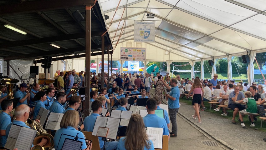 11.08 Uhr - Die Stimmung im Festzelt ist bereits bestens, die Musikgesellschaft Konkordia Widnau unterhält die jetzt schon zahlreichen Besucherinnen und Besucher. Hier ein erstes Bilderkarussell des Tages!