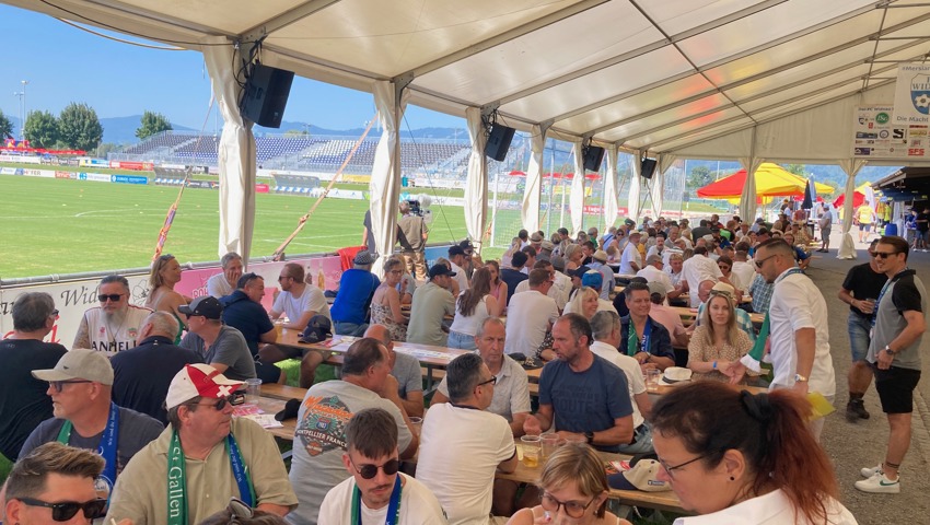 11.22 Uhr - Stefan Bucher, Präsident der Konkordia Widnau ist heute Morgen mit seinen Vereinskolleginnen und -kollegen beim «Frühschoppen» aufgetreten. Sein Tipp fürs Spiel: «Viel trinken!», sagt er, lacht und schiebt nach: «5:3 für Widnau.»