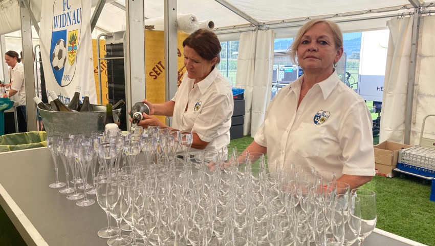 11.40 Uhr - Jetzt heisst es auf der Aegeten "sehen und gesehen werden": Der VIP-Apéro im Festzelt auf dem Nebenplatz ist eröffnet und zieht die Gäste an. Auf sie warten kühle Getränke und ein umfangreiches Speiseangebot.