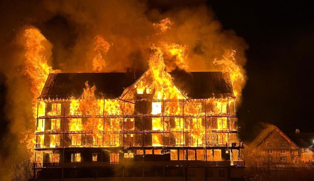 Die Bilder und Videos, welche den Medien zugestellt wurden, zeigen ein Flammeninferno. Menschen, die das Feuer beobachteten, schlugen bei der Polizei Alarm.