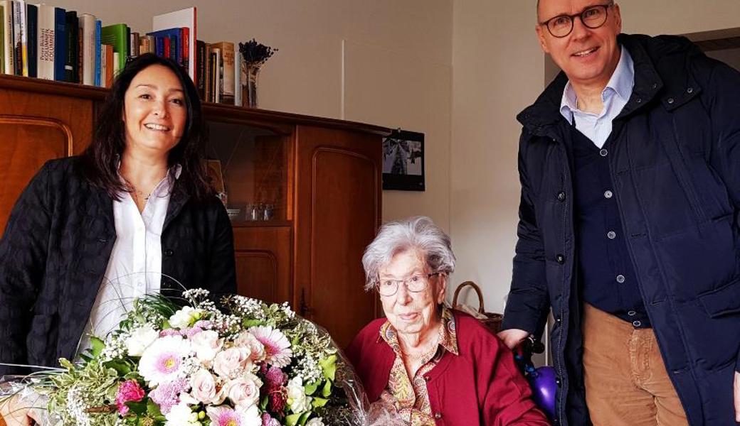 Im Alters- und Pflegeheim Trüeterhof in Thal feierte Martha Looser am 22. Februar bei guter Gesundheit ihren 100. Geburtstag. Nebst Verwandten und Freunden überbrachten auch Vizegemeindepräsidentin Miriam Salvisberg und Gemeinderatsschreiber Christoph Giger die besten Glückwünsche.