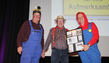 Ein weiterer Höhepunkt folgte mit dem Auftritt der beiden Dorfkolumnisten Benno und Hermann alias Rolf Sieber und Sepp Schmitter. Frei nach dem Motto «Die Lage ist ernst, um ernst zu bleiben» nahmen sie das Weltgeschehen und das Dorfleben gleichermassen aufs Korn. Zunächst ging der Blick über den grossen Teich zu Donald Trump. Für den Fall eines maskierten Überraschungsbesuchs hatten sie vorsorglich einen Friedenspreis-Pokal dabei. Man weiss ja nie.