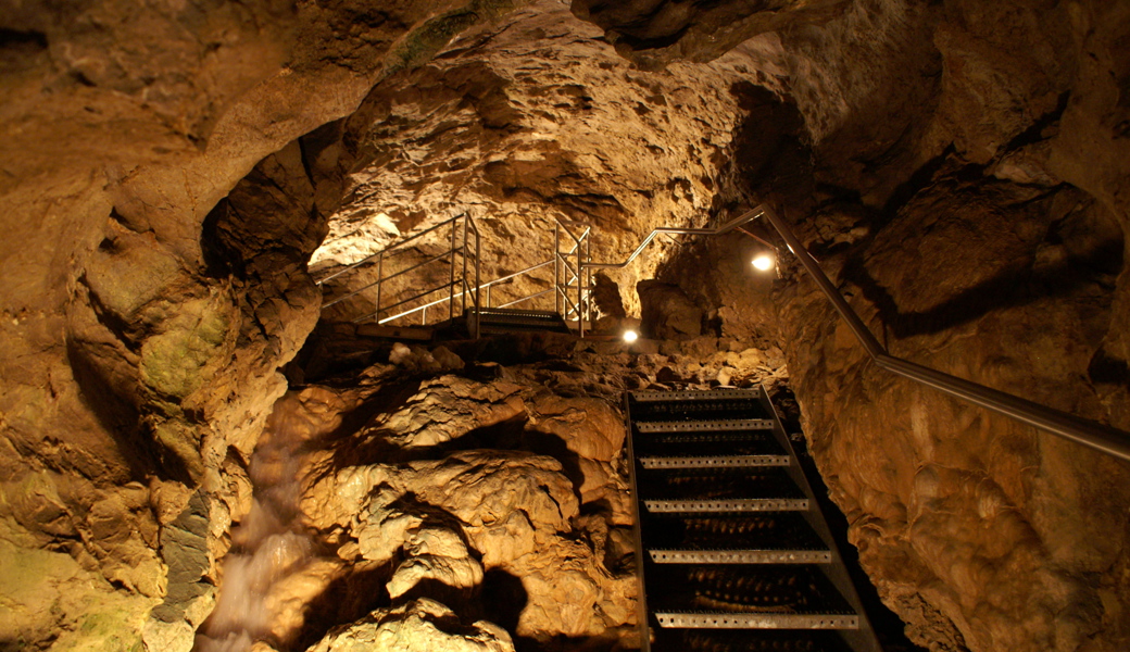 AnmeldenDie Kristallhöhle Kobelwald ist ein Ausflugsziel, das sich bei fast jedem Wetter anbietet. Dank einer Schleuse kann der Höhlenbach sogar bis zu einem gewissen Grad beeinflusst werden - so bleiben die Füsse trocken.