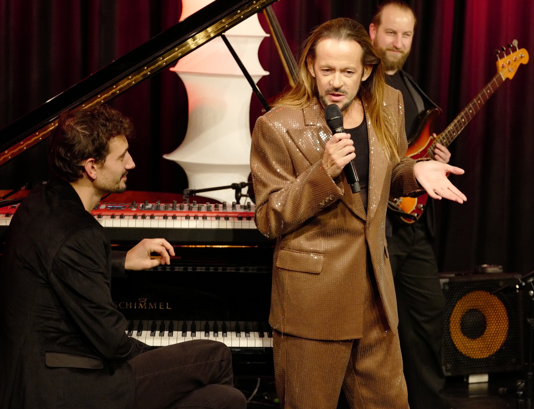 Begleitet wurde von der Heide von seiner virtuosen Band, bestehend aus David Cogliatti (Piano), Martin Buess (Gitarre), André Pousaz (Bass) und Beni Bürgin (Drums). Für das Publikum war es ein grossartiger Abend, mit viel Witz und Poesie, mit Evergreens wie «Tapetenwechsel», «In dieser Stadt» und «Eins und eins, das macht zwei».