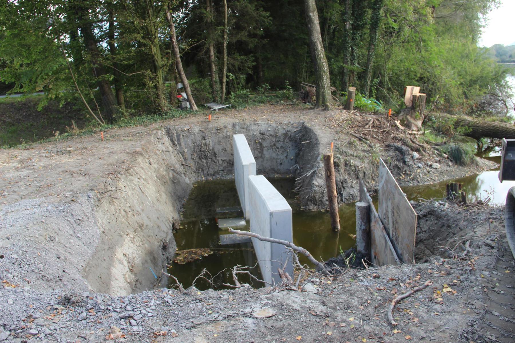 Wer das Gebiet von Osten her betritt, sieht grosse Betonelemente in den Boden eingelassen. Rechts vom See wurden viele Sträucher und Bäume entfernt. Die Massnahmen sind Teil eines Projekts, das einen grossen Teil des im Laufe der Zeit verwachsenen Flachmoors zurückbringen und es ermöglichen soll, das weitläufige Gebiet bestmöglich zu pflegen.Flachmoor teils zuge-