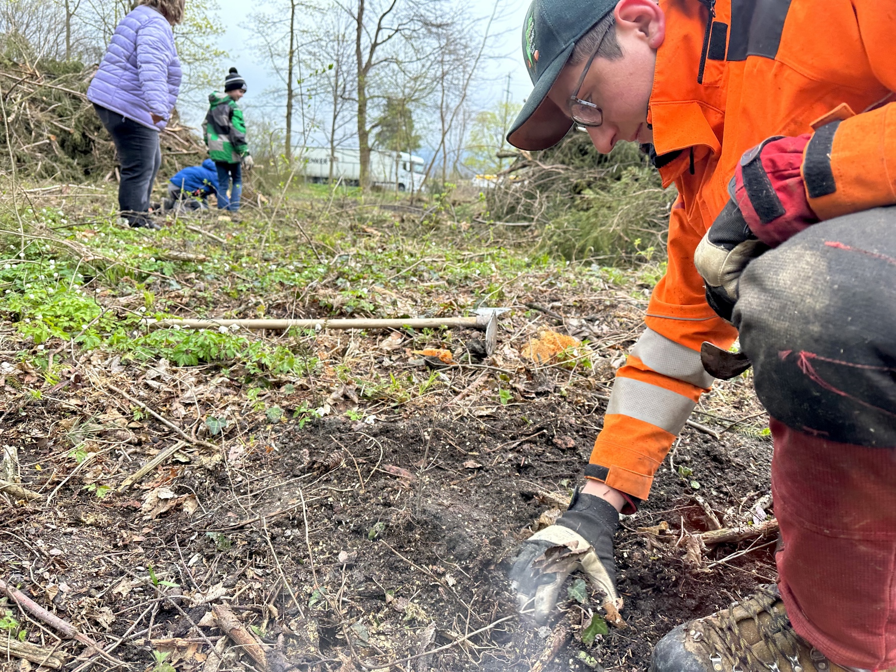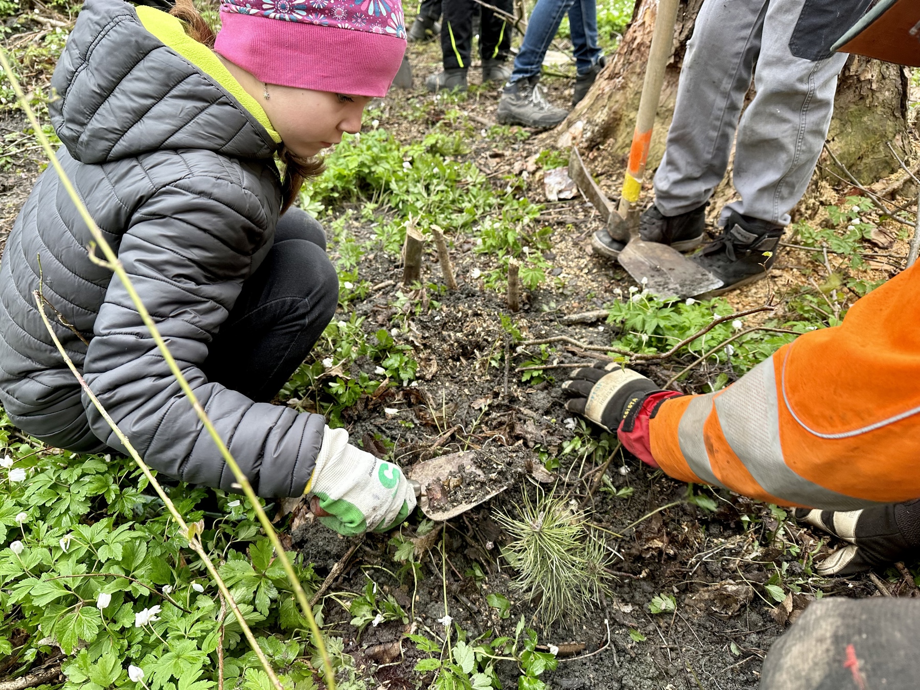 Nach einer grossen Rodung Anfangs Jahr war es jetzt Zeit für die Aufforstung: Am Montagmorgen pflanzten Kriessner Schulkinder der 5. Klasse rund 100 Bäume. Trotz vielen Arbeitsschritten und schweren Werkzeugen ging die Arbeit zügig voran und bereits nach einer Stunde waren fast alle Bäume in der Erde.