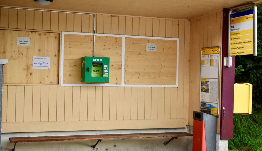 Neuer Defibrillator bei der Haltestelle Bild ergänzt bestehende Standorte