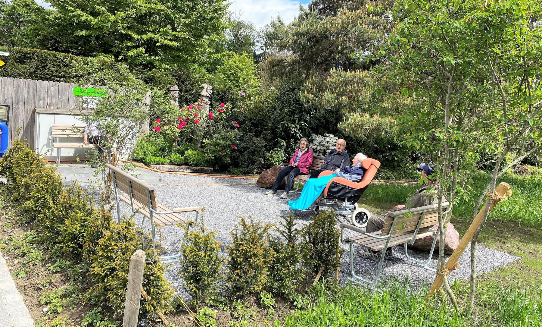 Anfang Mai erstellten Gärtner am Ende der J.L. Custer-Strasse im Grünenstein in Balgach einen Park. Initiant und Auftraggeber waren Peter und Marianne Heule, wohnhaft gleich angrenzend der neuen Anlage, die sie finanzierten. Vier bequeme Ruhebänke laden Spazierende zum Verweilen ein. Oft schätzen auch Bewohnerinnen und Bewohner des Seniorenzentrums Verahus den neu geschaffenen Park, die noch eine längere Tour ausserhalb ihrer Wohnstätte wagen, sei es mit Rollator oder im Rollstuhl mit Begleitung. Sogar für die Beschattung liess das Gönnerpaar den auf ihren Grundstück liegenden Park Sträucher und Bäume pflanzen. Marianne und Peter Heule hoffen, dass die neue Anlage «Park der Ruhe und Begegnung» von der Bevölkerung geschätzt und so ein Ort der spontanen Begegnung wird.