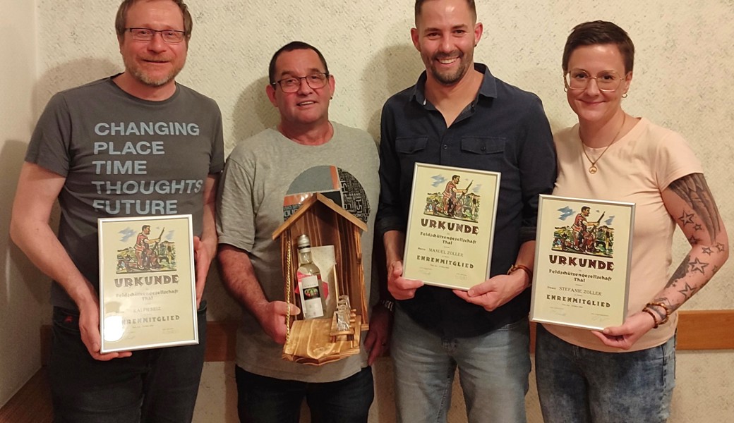 Daneben wurden drei Personen mit der Ehrenmitgliedschaft geehrt: Ralph Seiz, Manuel Zoller und Stefanie Zoller durften dafür Urkunden in Empfang nehmen. So hat die Feldschützengesellschaft ihr erstes weibliches Ehrenmitglied.
